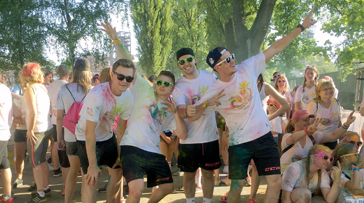 V záplavě barev nechyběly ani vítkovické modrá a bílá, tentokrát v červeném hávu. Čtveřice hokejistů HC VÍTKOVICE RIDERA Šimon Stránský, Patrik Zdráhal, Daniel Krenželok a Tomáš Jáchym nejprve odpovídali na všetečné dotazy moderátorů přímo na podiu, ale pak sestoupili zpět na zem a společně s dalšími pěti tisícovkami běžců vyrazili na barevnou trať. „Super zážitek, byla to velká legrace. Hodně barevné to bylo,“ usmíval se v cíli útočník Patrik Zdráhal.